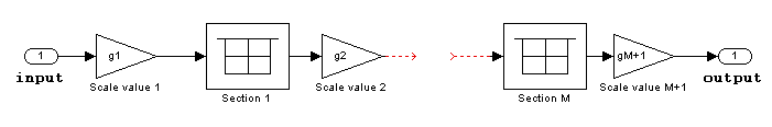 If you enter a scalar, the value is used as the gain value before the first section of the second-order filter. The rest of the gain values are set to 1.
