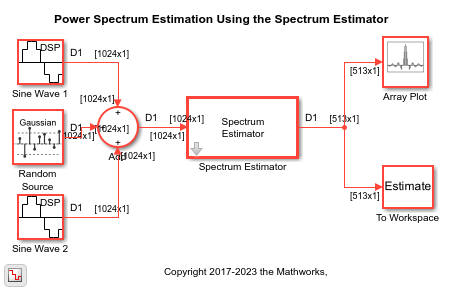 Estimate Power Spectrum Using the Spectrum Estimator Block