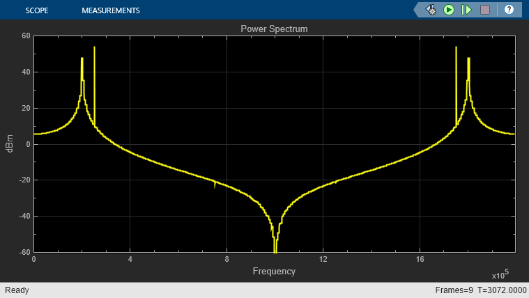 open_system('FFTHDLOptimizedExample_Burst/Spectrum Viewer/Power Spectrum viewer'); set_param(modelname,'SimulationCommand','start')