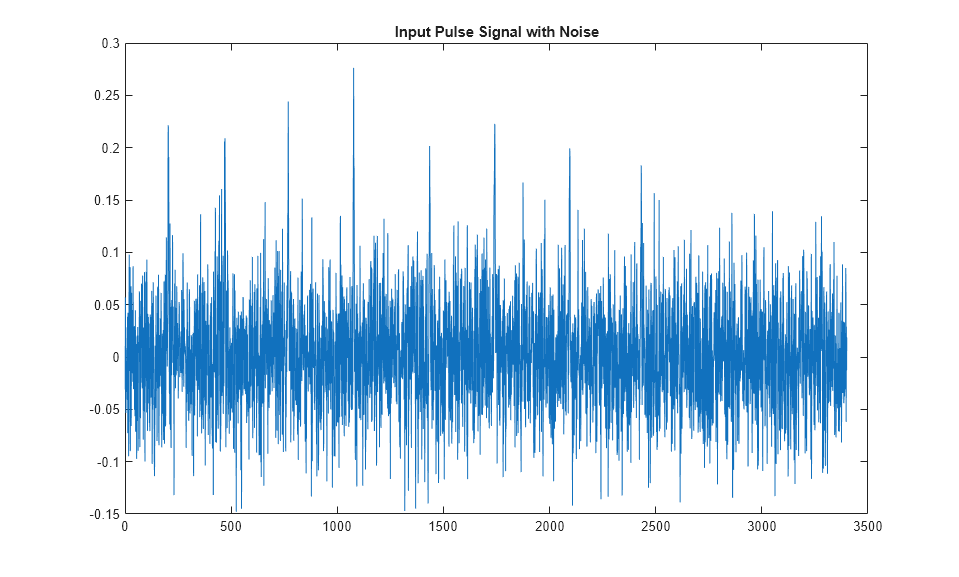 snr = 3; pulseStream = awgn(tx,snr,10*log10(cov(pulse)),1); % Add in AWGN. figure plot(pulseStream); title('Input Pulse Signal with Noise') noise = pulseStream - tx; fprintf('Computed SNR is %3.2f \n',10*log10(cov(pulse)/cov(noise))); h = flipud(conj(pulse)); isequal(h,pulse)