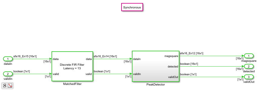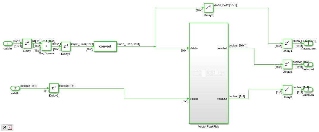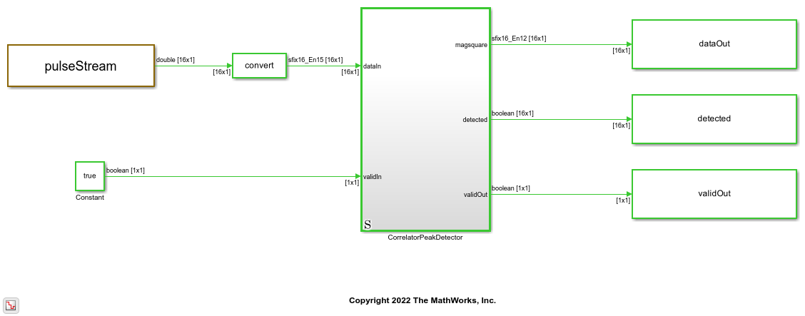 vectorSize = 16; windowLength = 19; model = 'CorrelationandPeakDetection'; load_system(model) set_param(model,'SimulationCommand','Update') open_system(model)