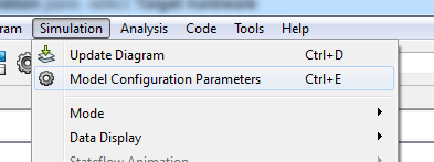 In the Simulink® Editor, select Simulation > Model Configuration Parameters.