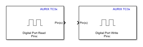3. Double-click the Digital Port Read and Digital Port Write blocks. Review the block mask, which contains a description of the block and parameters for configuring the associated Infineon digital output pin.