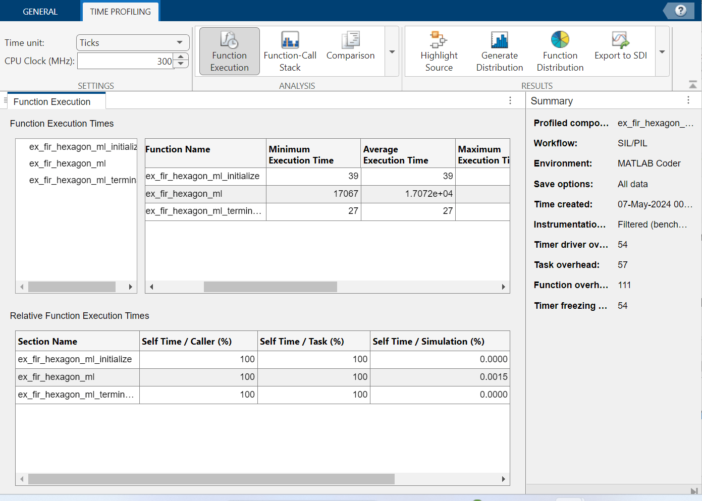 The MATLAB Coder App provides users with the ability to profile the generated code and offers various utilities for performance analysis. To perform profiling, follow this steps: