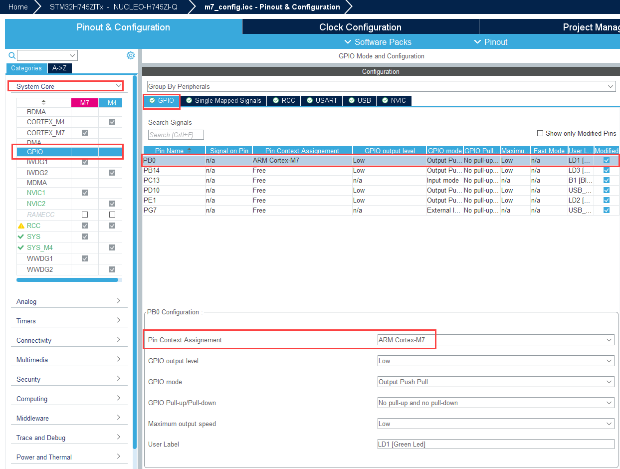 m7_config.iocfile.Configure the PB0 pin as GPIO Output.