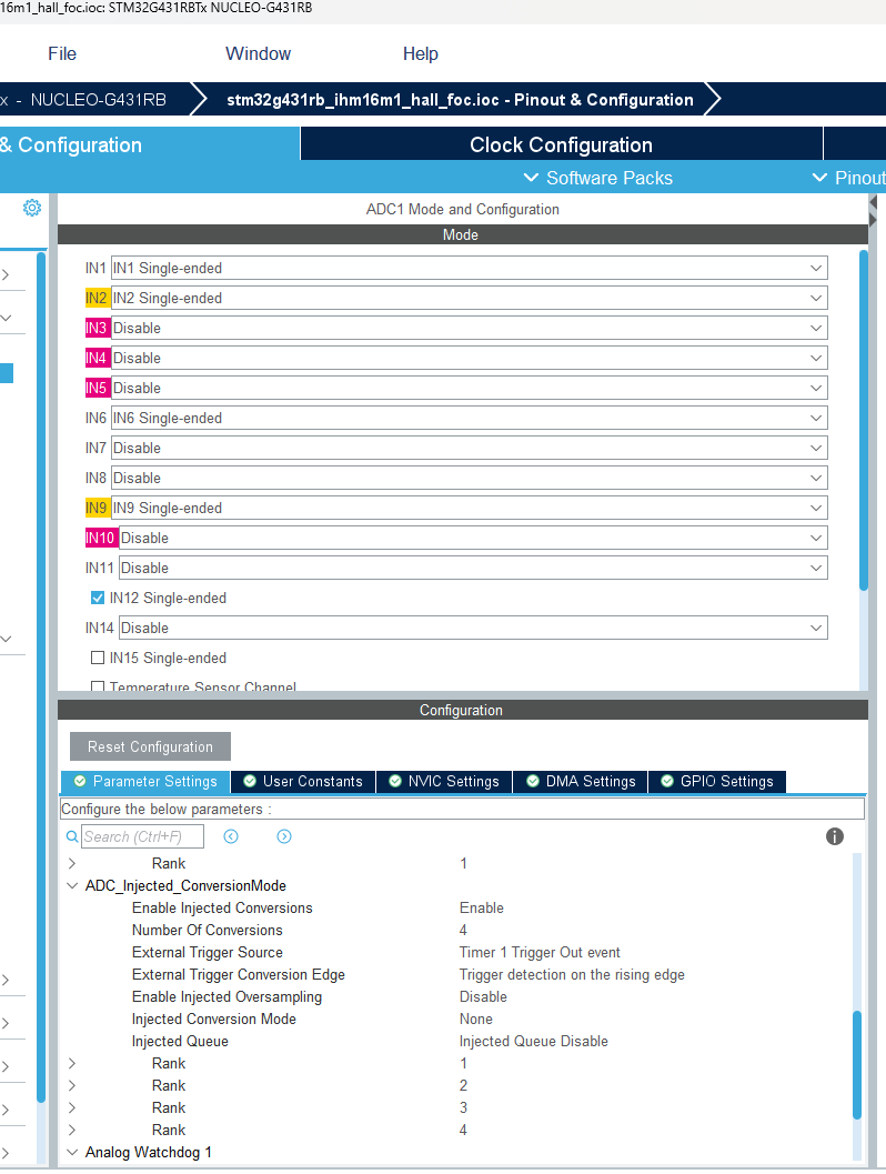 • The ADC is configured to read current and voltage feedback from injected conversions, and Vdc from regular conversions.