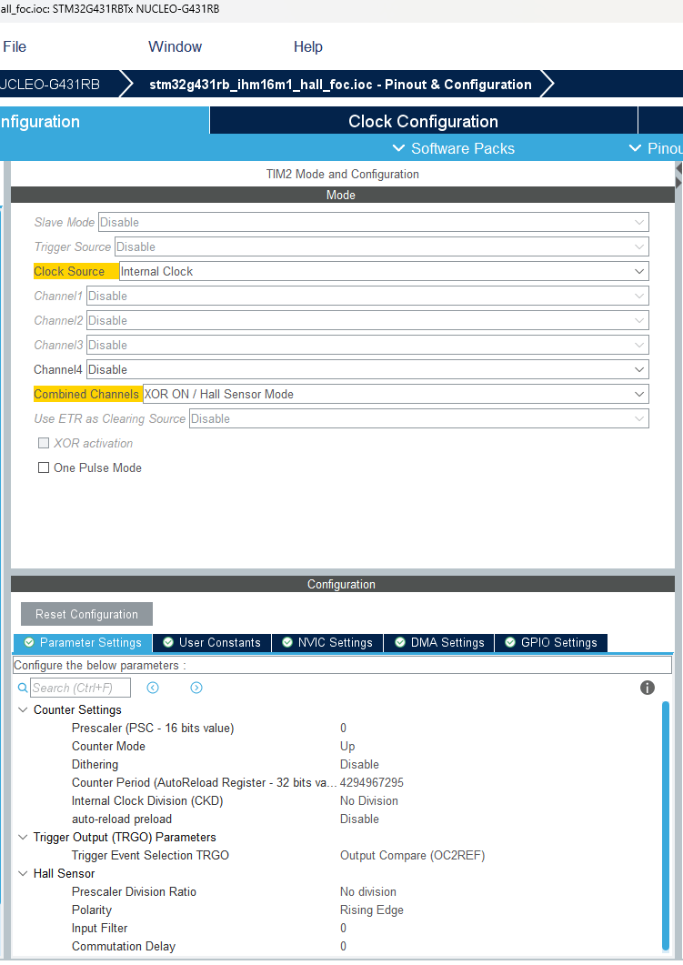 3. Ensure the motor parameters and hall offset value are updated. For more information, see Hall Offset Calibration for PMSM with STM32 Processors.