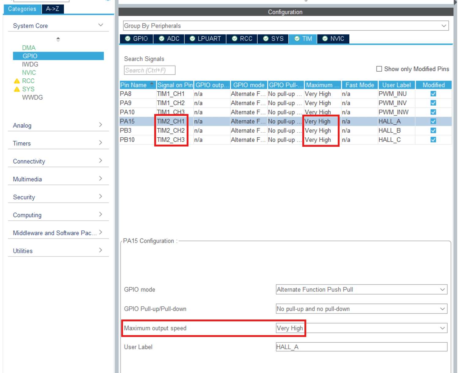 STM32CubeMX Configurations