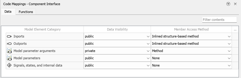 For detailed information about configuring data members, see Interactively Configure C++ Interface and Configure Parameters for C++ Interface Code Generation.