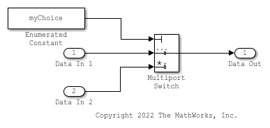 1. Open the model ex_pattern_enum that has an Enumerated Constant block and a Multiport Switch block.