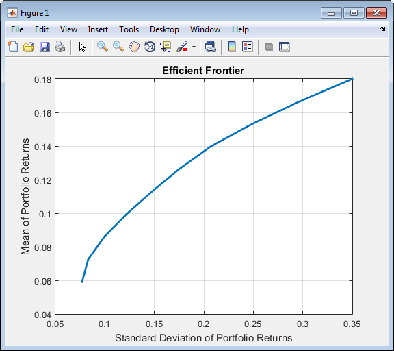 p = Portfolio(p, 'AssetMean', m, 'AssetCovar', C);
