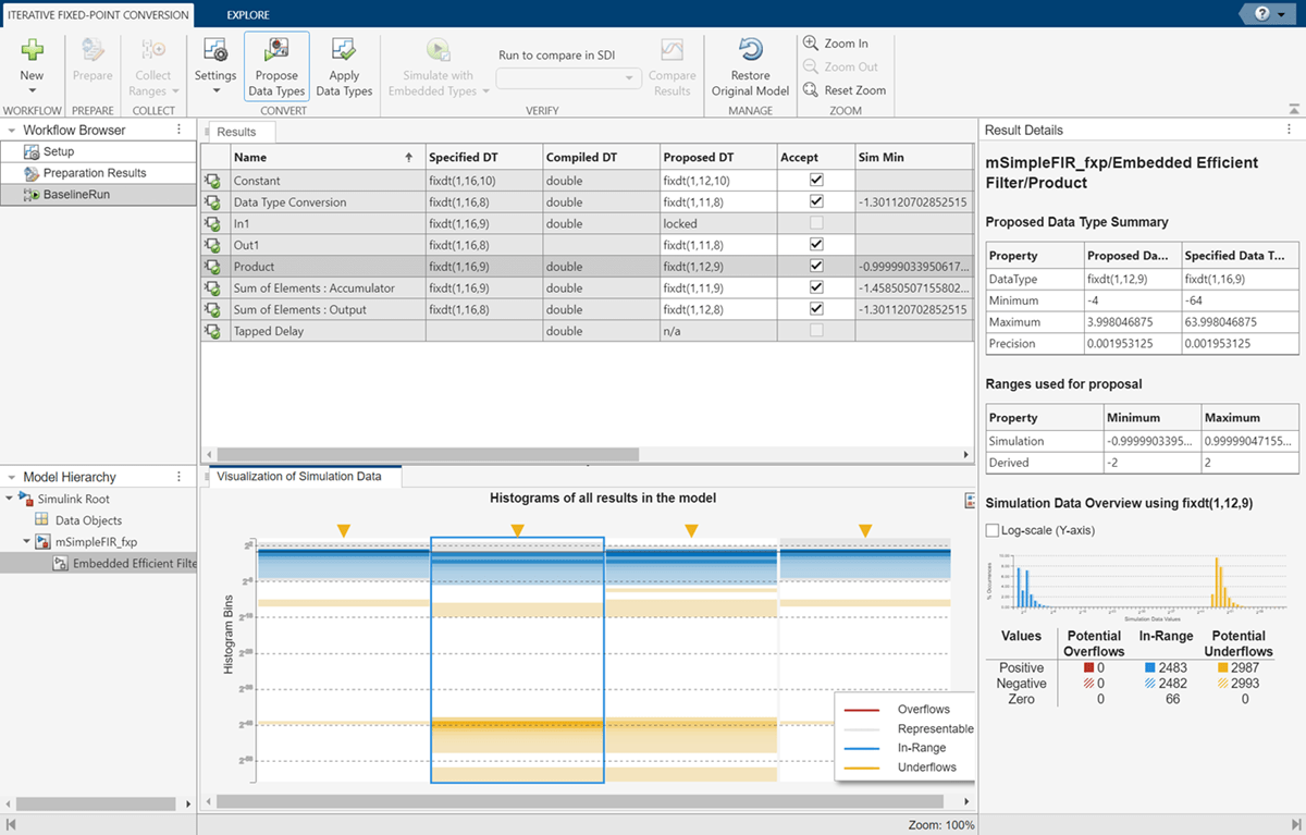 Iterative Fixed-Point Conversion — Automatically propose fixed-point data types and manually select which data types to apply to your model.