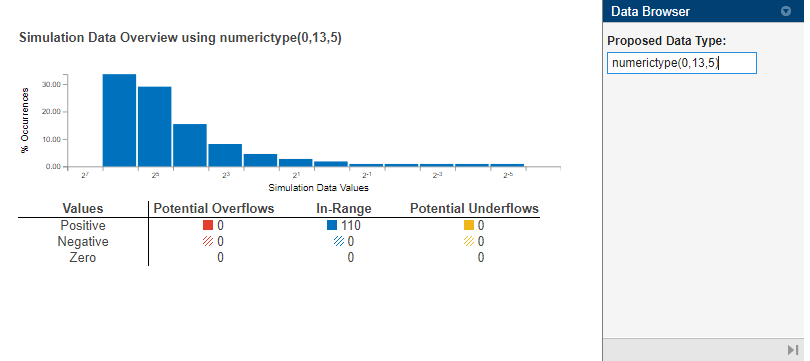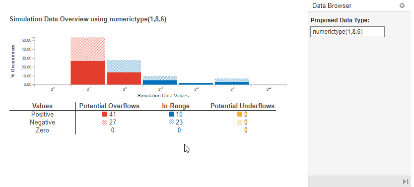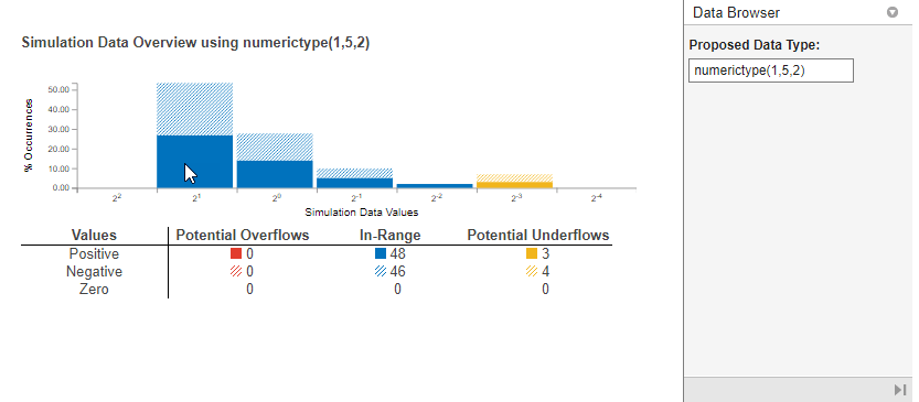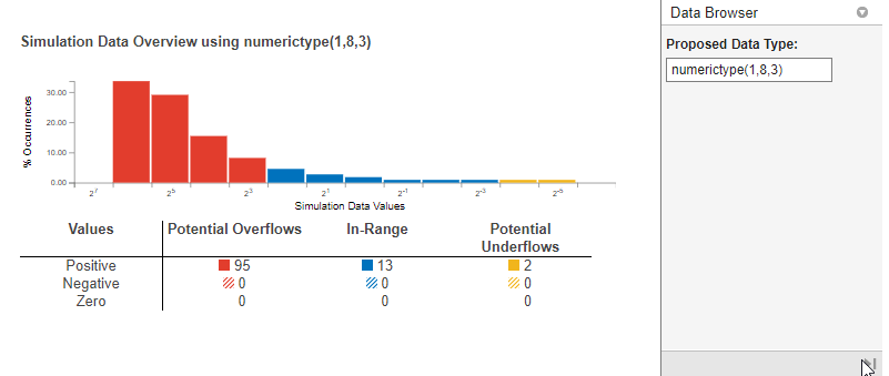 The Data Browser pane displays the current fixed-point data type as the Proposed Data Type. You can change the data type by entering a value directly in this box.
