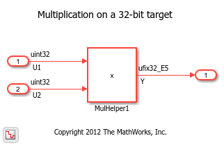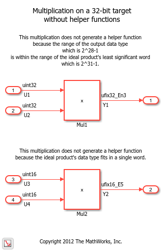 The following model creates helper functions for multiplication because the range of the ideal product exceeds the range of a single word data type.
