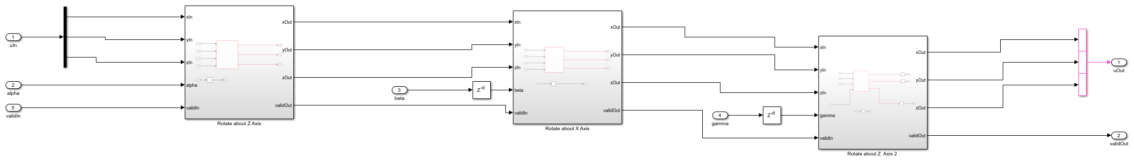 open_system("euler_rotations/HDL_DUT/Rotate about Z Axis")