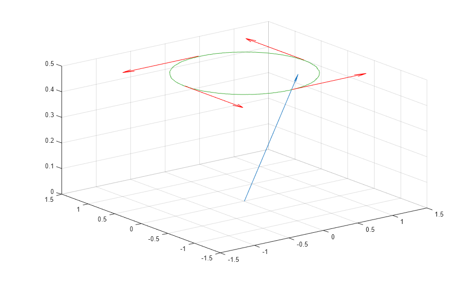 outData = out.simout.Data; quiver3(0,0,0,sqrt(3)/2, 0, 0.5); hold on; plot3(outData(:,1), outData(:,2), 0.5*ones(length(outData))); quiver3(sqrt(3)/2*[1;0;-1;0],sqrt(3)/2*[0;1;0;-1],[0.5;0.5;0.5;0.5],... 0.5*[0;-1;0;1],0.5*[1;0;-1;0],[0;0;0;0], 'r-');