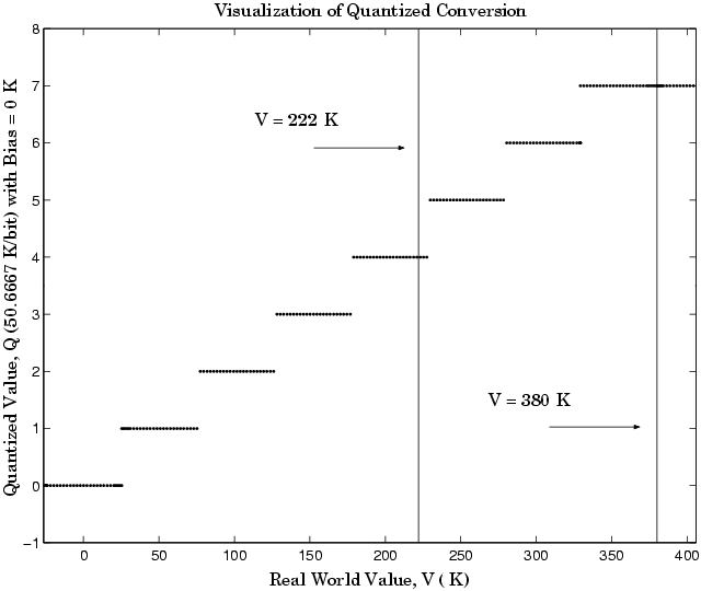 Notice that there are 7.5 possible quantization values. This is because only half of the first bit corresponds to temperatures (real-world values) greater than zero.