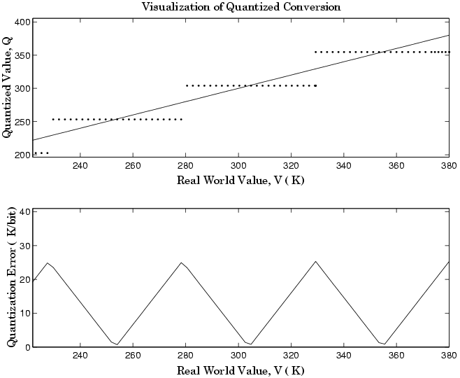 The quantization error is –25.33 K/bit ≤ Error ≤ 25.33 K/bit.