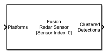 The Fusion Radar Sensor block reads target platform poses and generates detection and track reports from targets based on a radar sensor model. Currently, the Fusion Radar Sensor block supports only non-scanning mode. The Fusion Radar Sensor block can generate clustered or unclustered detections with added random noise and can also generate false alarm detections. You can also generate tracks from the Fusion Radar Sensor block. Use the Target reporting format parameter to specify sensor outputs as clustered detections, unclustered detections, or tracks.