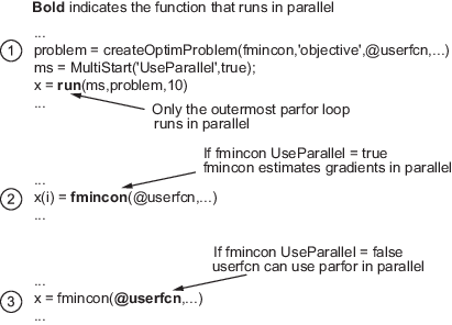 are satisfied, as given in Parallel Optimization Functionality. The figure When parfor Runs In Parallel shows