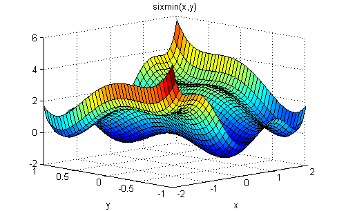 This function is also called the six-hump camel back function [3]. All the local minima lie in the region –3 ≤ x,y ≤ 3.
