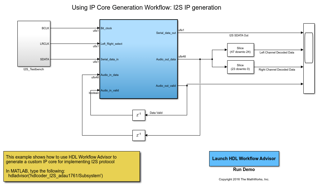 I2S IP is developed by modeling it in Simulink.