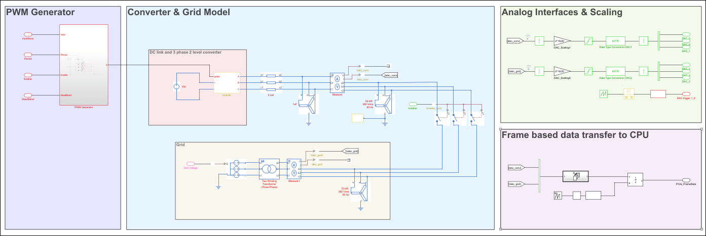 In the first step, the model is used to validate the closed-loop control by desktop simulation. The controller consists of a phase-locked loop for grid synchronization and PI current control in the synchronous reference frame.