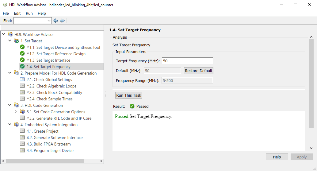 2.3 In the Set Target > Set Target Frequency task, choose Target Frequency as 50 MHz.