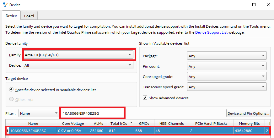 1. Create an empty Quartus project using the New Project wizard. Enter the device part number as shown in this figure:
