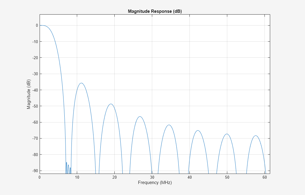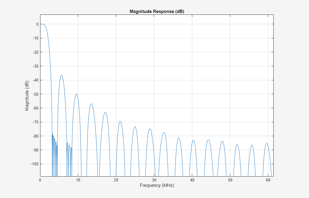 ddcPlots.cicComp = fvtool(... dsp.FilterCascade(cicFilt,cicGainCorr,compFilt), ... 'Fs',FsIn,'Legend','off');
