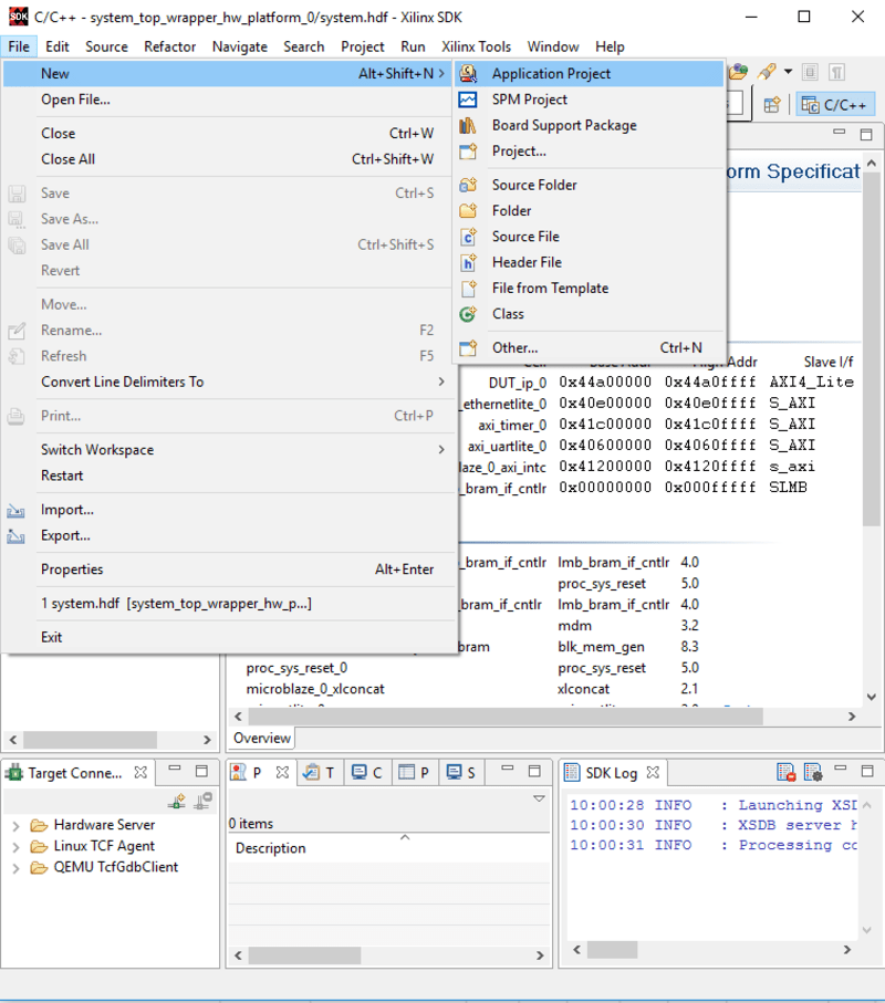 This section will show how to create a new Xilinx SDK project and incorporate the code from this example to then modify or extend.