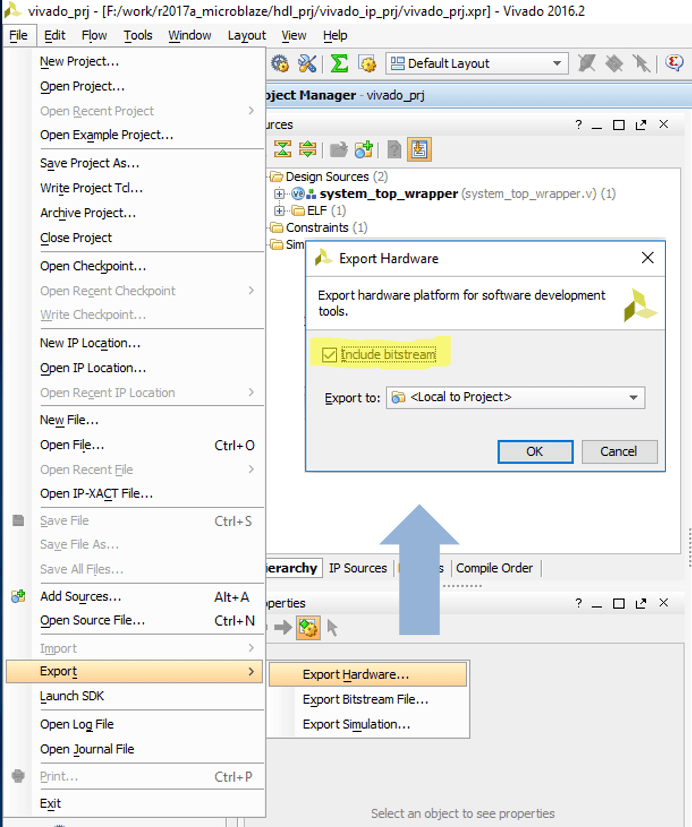 2. Export the existing design, including the generated bitstream, to a local folder. Once this is done, go ahead and "Launch SDK" as well.