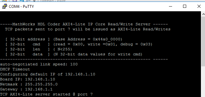xil_printf("\n\r\n\r-----MathWorks HDL Coder AXI4-Lite IP Core Read/Write Server ------\n\r");