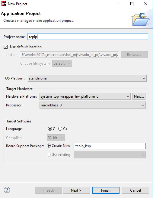 set_property SCOPED_TO_CELLS { microblaze_0 } [get_files -all -of_objects [get_fileset sources_1] {mw_lwip_tcpip_axi4.elf}]Doing this allows the ELF to be packaged with the bitstream and programmed into the MicroBlaze BRAM memory at the same time as the FPGA.