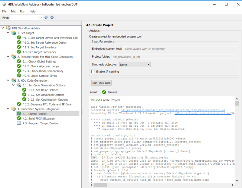 1. Open the Xilinx Vivado project by clicking the link in HDL Workflow Advisor step 4.1 "Create Project" :