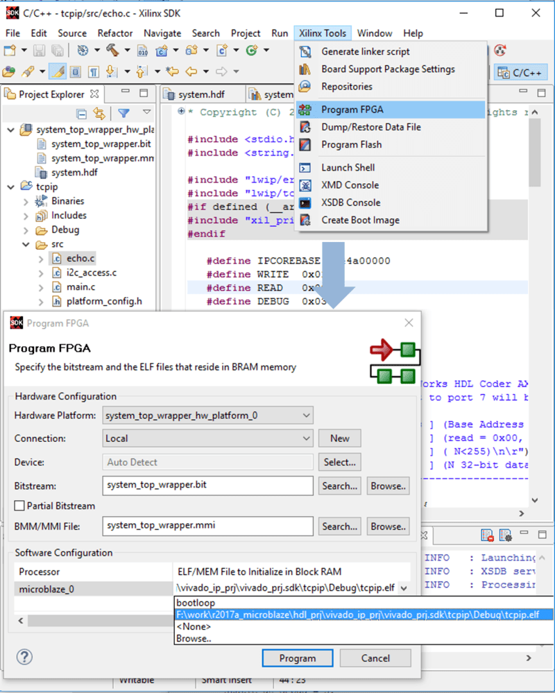 Appendix C: Program the FPGA with ELF and bitstream