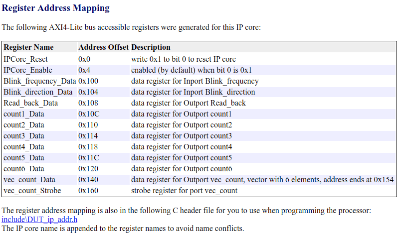 Vector data is supported on the AXI4/AXI4-Lite interfaces as of R2017a. Unlike a collection of scalar ports, all the elements of vector data are treated as synchronous to the IP Core algorithm logic. Additional strobe registers added for each vector input and output port maintain this synchronization across multiple sequential AXI4 reads/writes.