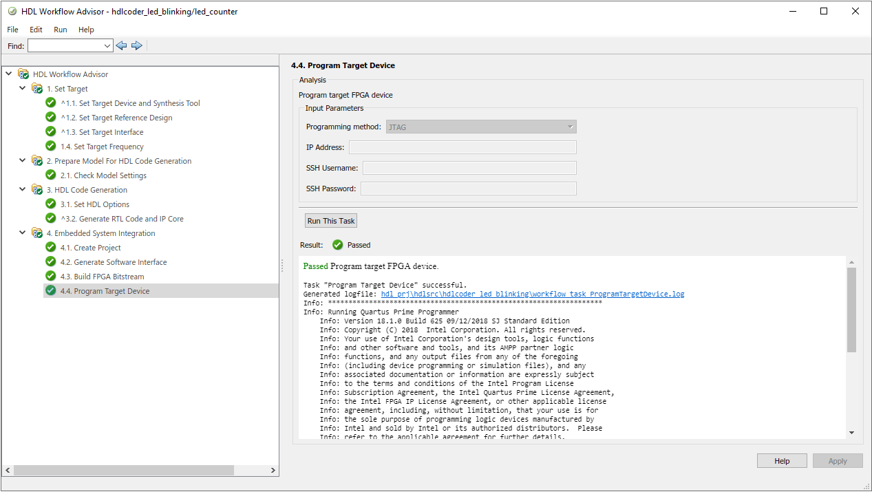 7. Run the remaining steps in the workflow to generate a bitstream and program the target device.