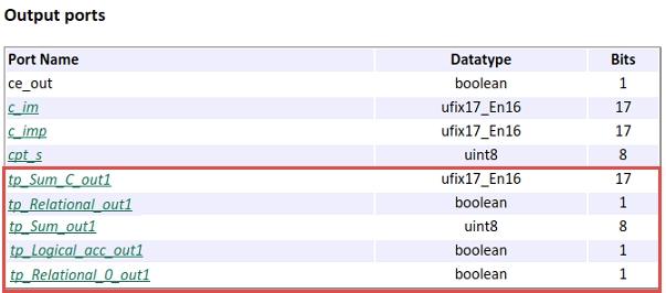 If you want to see the mapping between test point ports in the HDL code and the test point signals in your model, enable generation of the code generation report. The report displays the test point ports with links to the corresponding test point signals in your Simulink model.
