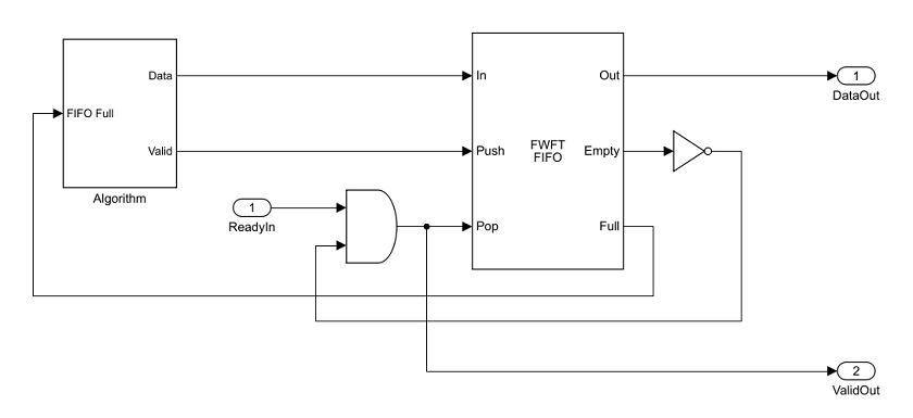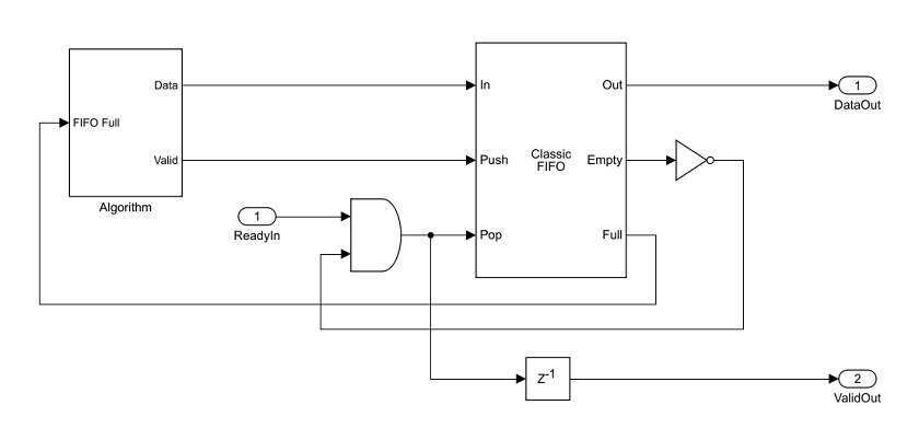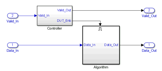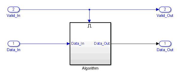 Frame-Based Modeling — Use these guidelines when your algorithm operates on a complete frame of data. The data signals at the design under test (DUT) boundary can be vectors or matrices. Do not use this mode if you want to model the Valid and Ready signals.