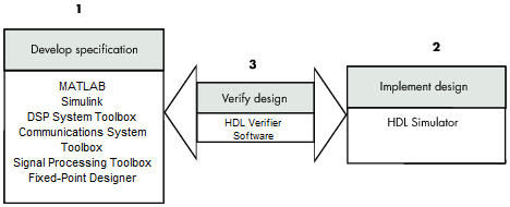 The HDL Verifier™ software consists of MATLAB® functions, a MATLAB System object™, and a library of Simulink® blocks, all of which establish communication links between the HDL simulator and MATLAB or Simulink.