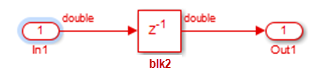 Compared with the original Simulink model, the generated SystemVerilog module introduces one extra sample delay at the output. For example, in the following Simulink model, the output is one-sample delayed version of the input signal.