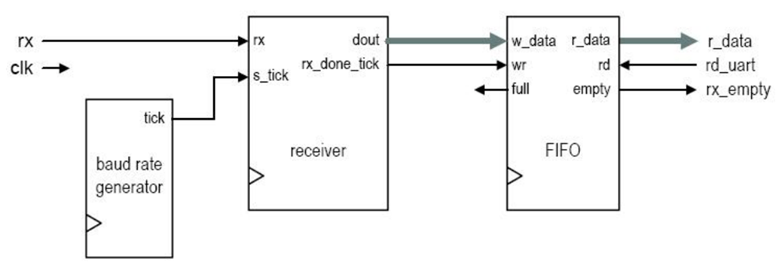 The following schematic illustrates the UART receiver design.