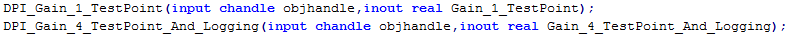 Under Test Point Access Functions, when you set Generate access function to test point to None, test points that are marked are ignored, and no access functions are generated. Changing the value to One function per test point enables you to access each test point independently. This figure shows the interface generated for this example.
