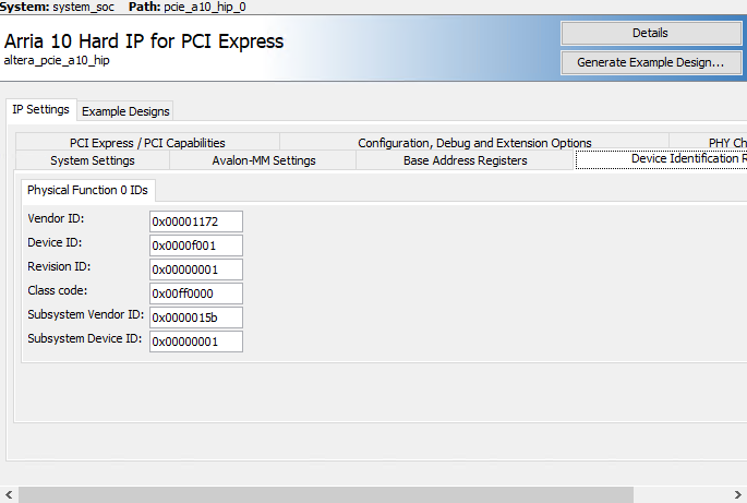 On the Physical Function 0 IDs tab, set the parameters as shown in this figure.