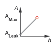 Maxrefers to a fully open orifice and the subscriptLeakto a fully closed orifice—one with internal leakage flow area only. The figure shows a plot of the linear function A(h).