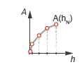 Area vs. opening table— Specify the opening area at discrete orifice openings as a 1-D lookup table. The opening area is computed for a given orifice opening by interpolation or extrapolation of the tabulated data. The figure shows a conceptual plot of the tabulated function A(h).