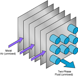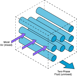 example, when the two-phase fluid flows inside the tubes and the moist air flows