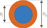 The difference between the outer diameter and the inner diameter depicted in orange represents the thermal liquid. The blue region within the inner diameter is the fluid that exchanges heat with the thermal liquid.