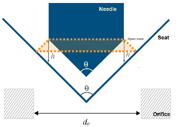 h is the vertical distance between the outer edge of the needle and the seat, as indicated in the schematic above.